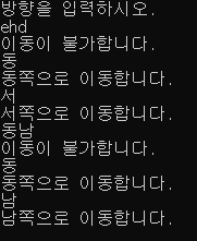 Console.WriteLine("남쪽으로 이동합니다.");